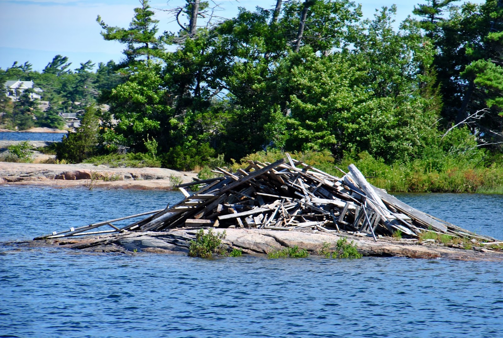 Sunday morning we decided to start our leap across Georgian Bay. It was a beautiful sunny morning, the wind was okay, still blowing but not as hard as the day before. The scenery again was awe inspiring. The water is blue as can be, and we now see why Georgian Bay is considered the Bay of 30,000 island. This was absolutely not a place for Fred (our auto pilot). Mike put his navigating skills to use and was doing a beautiful job. Here are some photos of the bay.